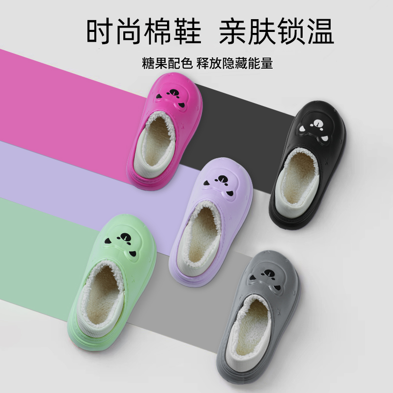 秋冬季小熊棉拖新款居家防水棉拖鞋男外穿防滑情侣包跟加绒全包