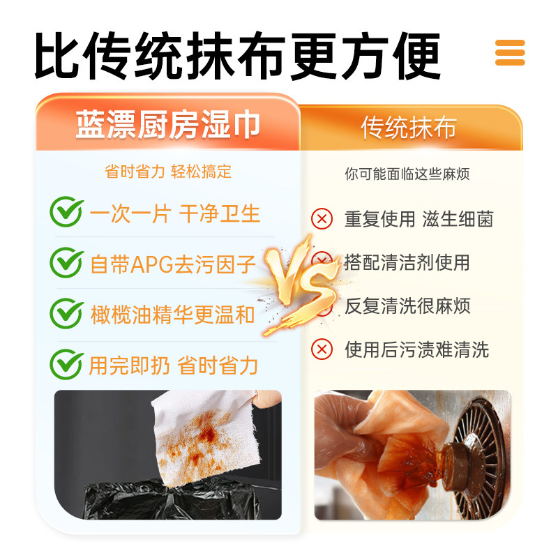 大尺寸厨房湿巾,油污轻松搞定!这种厨房湿巾太火了!你还在傻傻的用抹布吗?擦不干净,又难清洗,还会滋生细菌!丢掉不卫生的抹布,有它就够了~~强力去污,即擦即净,效果惊人,用一次就爱上!!