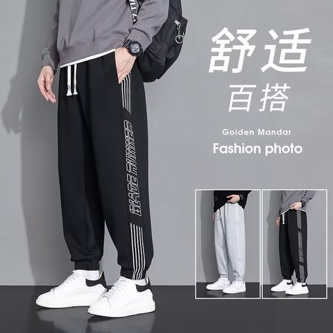 39¥ CZ225 4JdD51wox48¥ https://m.tb.cn/h.ijIc623 2023年秋季新款裤子男休闲运动长裤宽松加大码潮牌哈伦束脚卫裤男