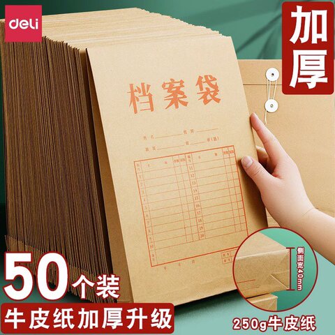【50个装】得力牛皮纸档案袋文件袋A4加厚批发大容量资料袋分类纸