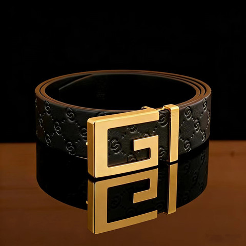 酷奇豆男士头层牛皮皮带G扣商务百搭时尚帅气平滑扣奢华字母腰带