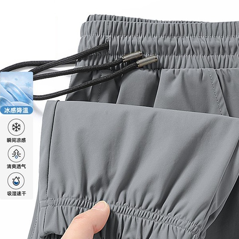 干活穿的运动冰丝速干裤男款夏季薄款耐磨男裤束脚休闲男士长裤子