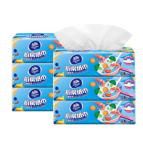 维达厨房抽纸专用纸巾80抽*6大包吸油吸水可接触食品可水洗纸巾