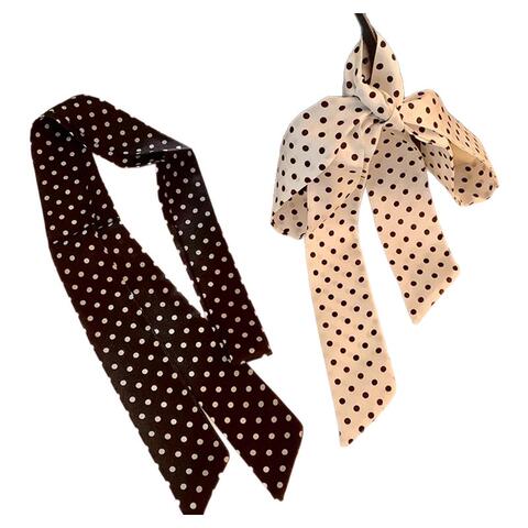复古系脖黑色波点丝巾女2026新款高级感韩系长条飘带百搭领巾发带