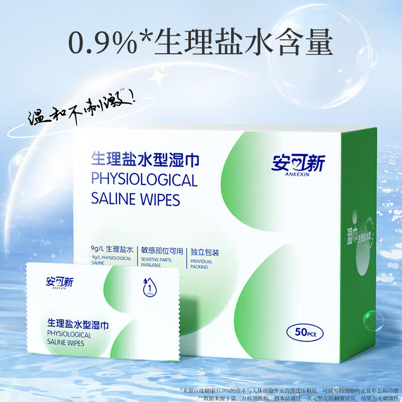 安可新生理盐水清洁湿巾来袭!单片独立装,50片仅需7元,超划算!专为敏肌痘痘肌设计,医美敷脸、湿敷、清理伤口都适用,温和呵护,给你洁净又安心的肌肤体验!