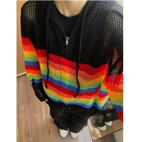 87¥ CZ193 jjhi5a5yBet¥ https://m.tb.cn/h.iSZUYcE 美式撞色镂空连帽针织开衫男夏季防晒罩衫多巴胺春秋情侣衬衫外套