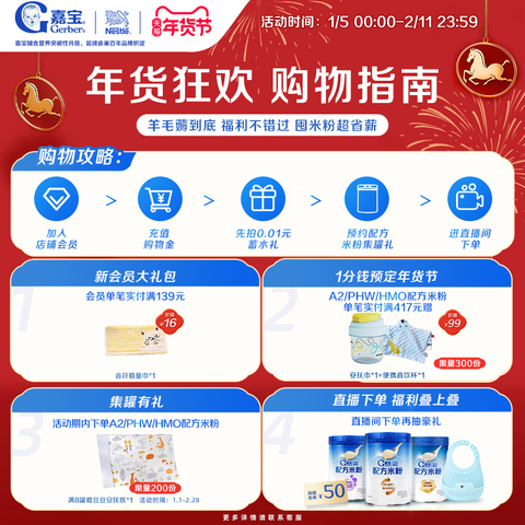 【营养好吸收】嘉宝配方米粉PHW部分水解蛋白益生菌高铁米粉 【售价】:¥996.00 【券后】:¥536.00 【优惠券】:¥460 推荐理由:【券后536元;新客单笔满139元送音符猫童巾(限量300份),会员单笔买1组送亲肤浴巾(限量200份),看直播付定至高免50元】嘉宝配方米粉真是宝贝们的挚爱!PHW部分水解蛋白益生菌高铁米粉,高蛋白,谷物辅助食品,简单易冲调,易于消化吸收,全面营养支持 👉复制这条信息打开【手机淘宝APP】即可领券购买:/