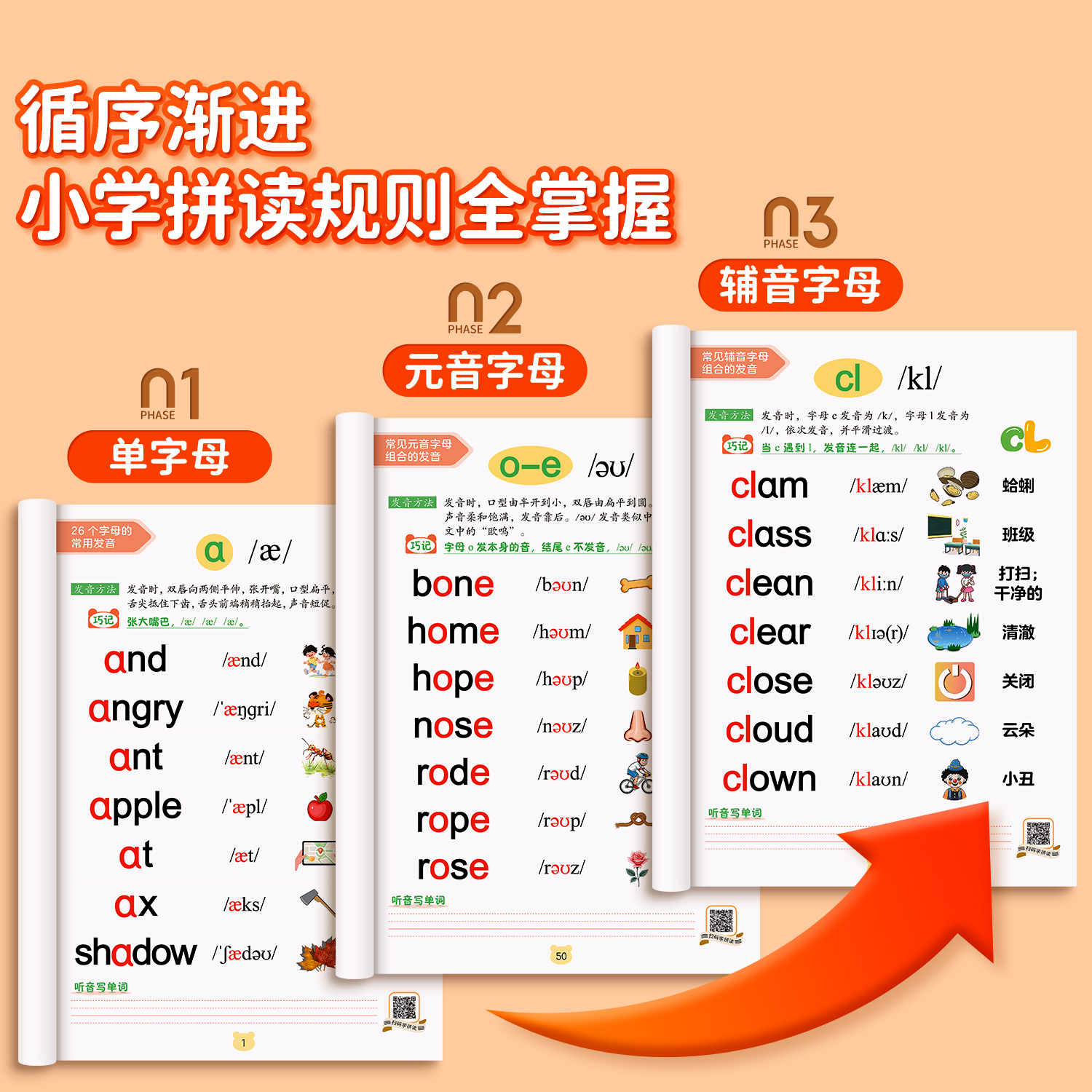 【(1)淘金币减0.59元,到手9.31元】小学英语自然拼读单词速记零基础启蒙,超赞!