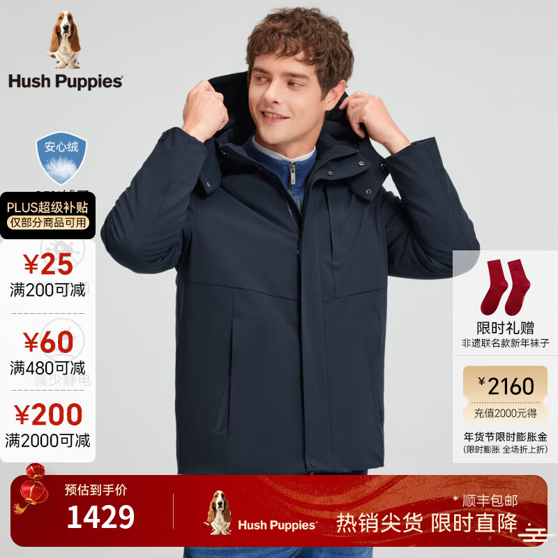 暇步士(Hush Puppies)【挺括有型】男装2025冬季新款蓬松舒适锁温安心绒羽绒服 墨蓝色 XL
