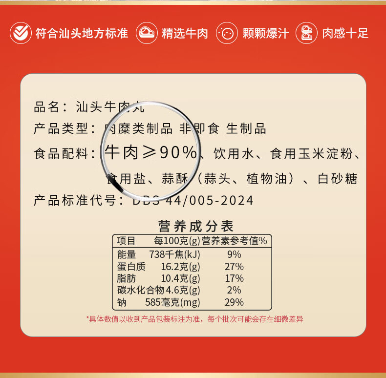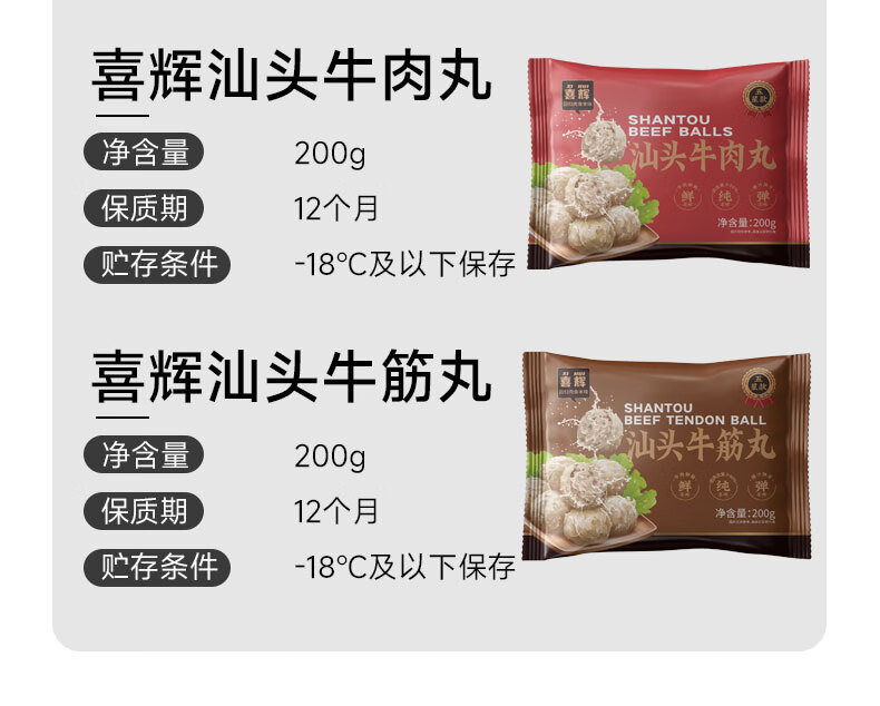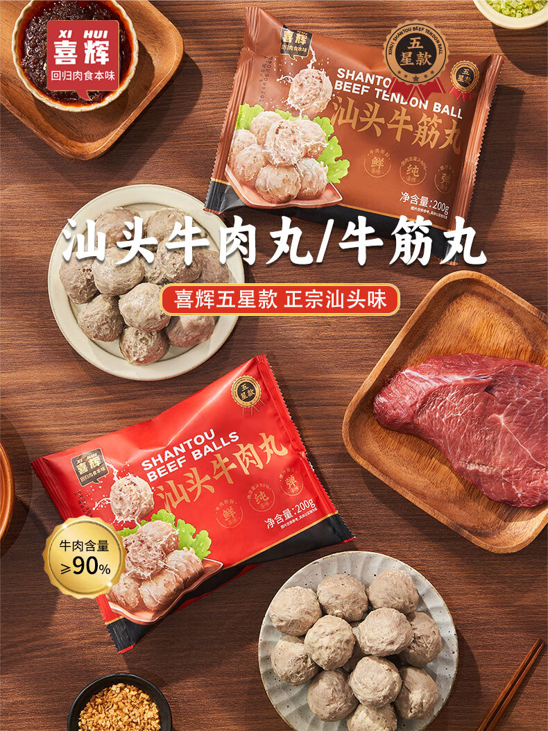 喜辉五星款汕头牛肉丸纯牛肉≥90%正宗潮汕牛筋丸零添加火锅烧烤食材 【牛肉≥90%】牛肉丸200g*5袋