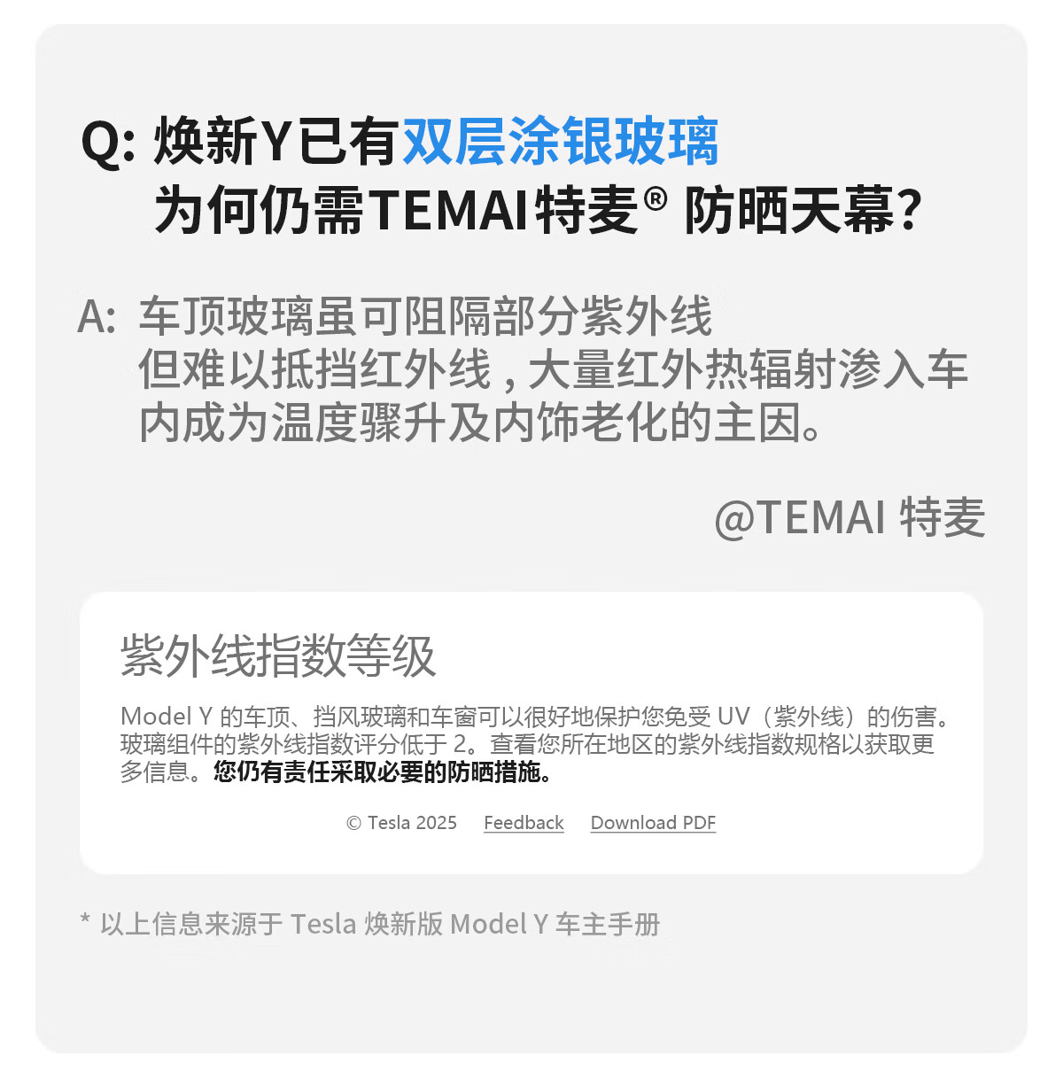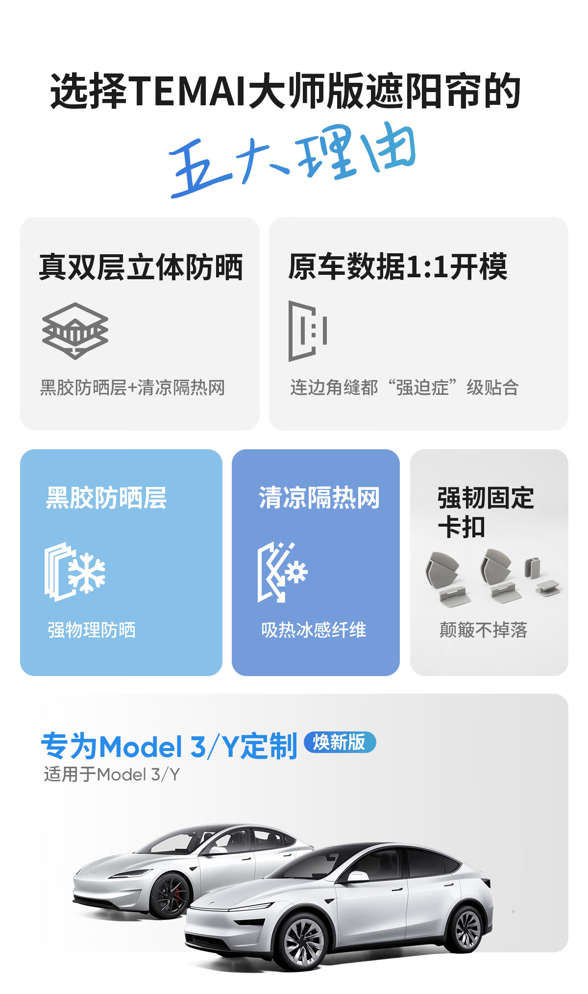 特麦TEMAI大师版遮阳帘适用特斯拉Model3/y天窗遮阳顶丫防晒隔热配件 焕新model 3大师版天窗遮阳帘套装【原车色】