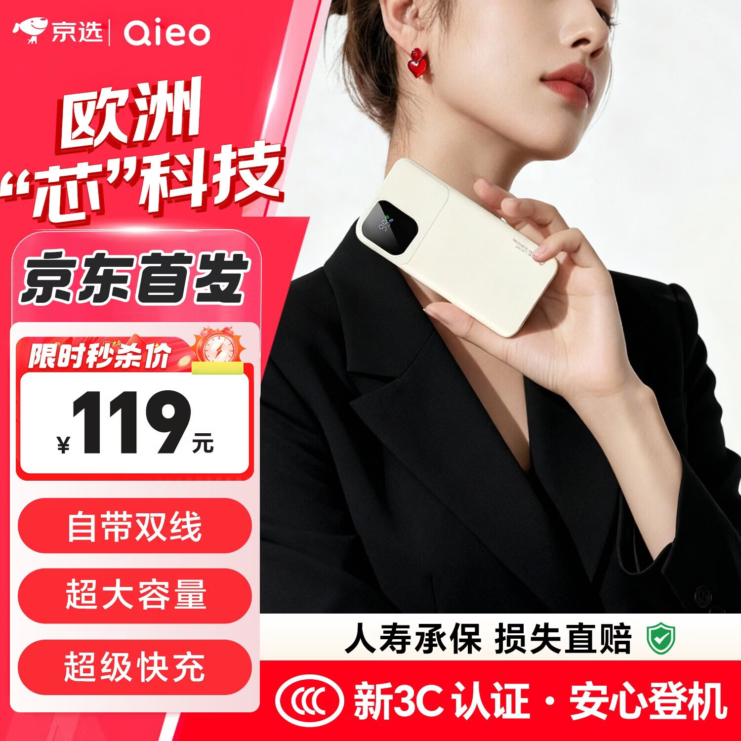 Qieo充电宝【新3c认证丨百万热销】20000毫安大容量 可上飞机自带双线轻薄 超级快充小米华为苹果手机 新3C【2万毫安|超级快充】旗舰版 【新国家3C认证|最快今日达】