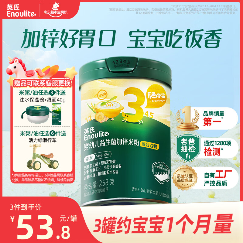 英氏婴幼儿米粉混合谷物加锌营养米粉258g宝宝辅食营养米糊3阶10月龄+