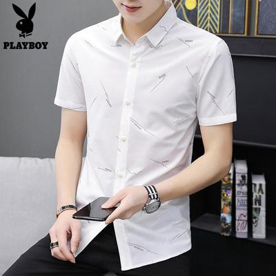 花花公子夏季短袖衬衫男休闲衬衣