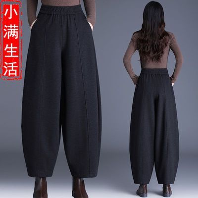 梨形报恩裤毛呢弯刀裤女士秋冬新款爆款小个子九分裤休闲灯笼女裤