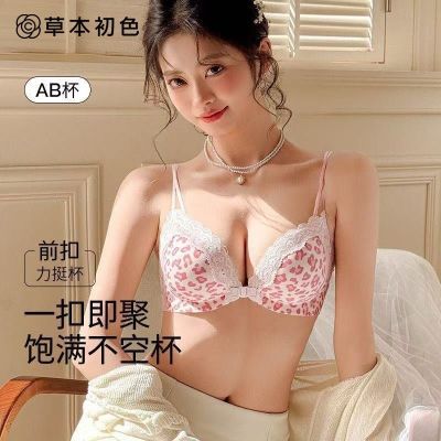 草本初色蕾丝前扣式豹纹女内衣小胸聚拢无钢圈防下垂性感文胸套装