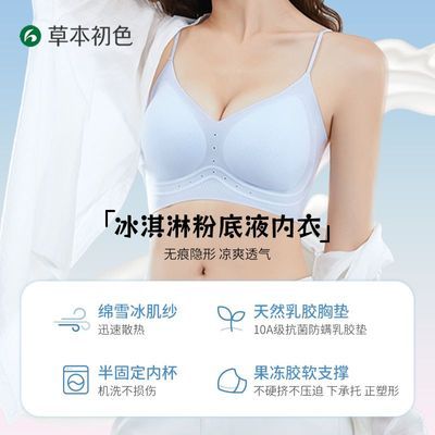 草本初色粉底液凉感内衣女士2026新款小胸聚拢隐形无痕细肩带文胸