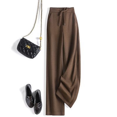 高级美拉德系秋冬松紧腰中年女士直筒裤时尚高腰垂感系带休闲裤