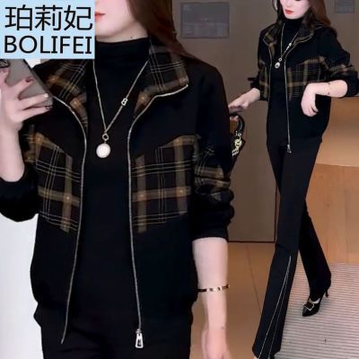 加绒加厚外套女新款2025冬季时尚洋气宽松显瘦拼接格子保暖上衣潮