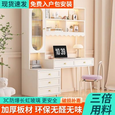 奶油实木书桌书架一体学习桌学生写字电脑桌书柜家用卧室办公桌