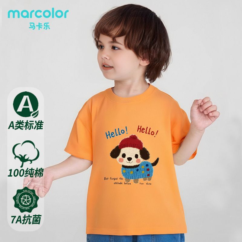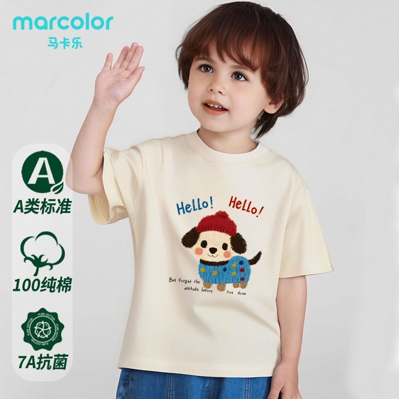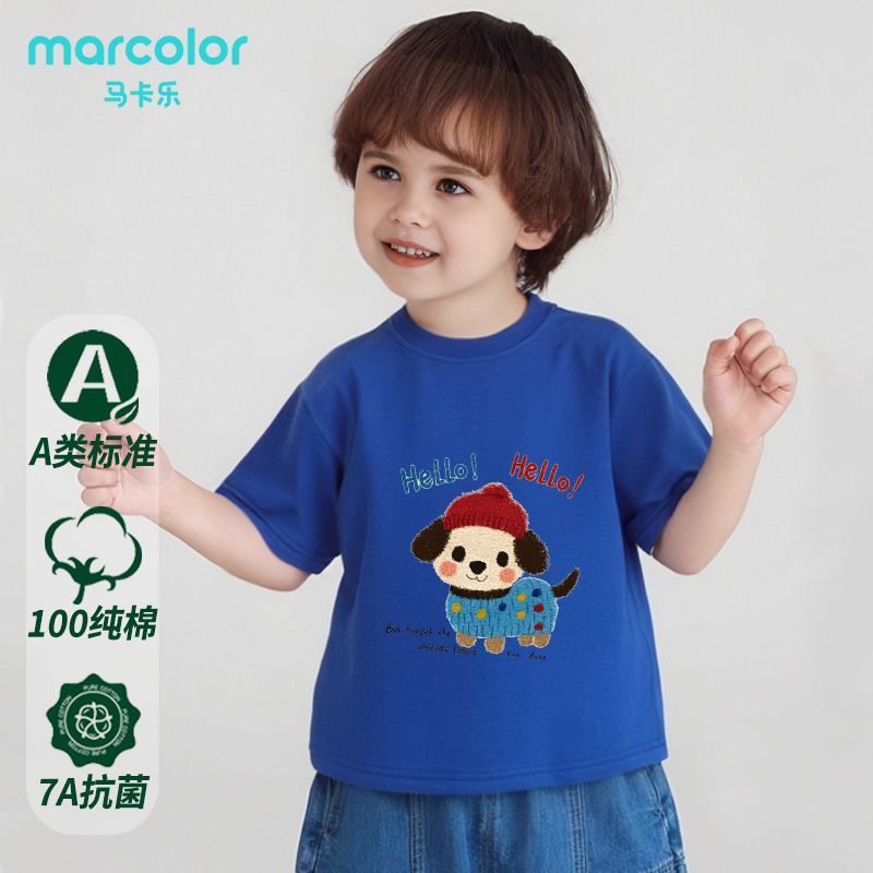 马卡乐童装男女宝宝纯棉短袖半袖打底夏季儿童夏装运动上衣T恤a类