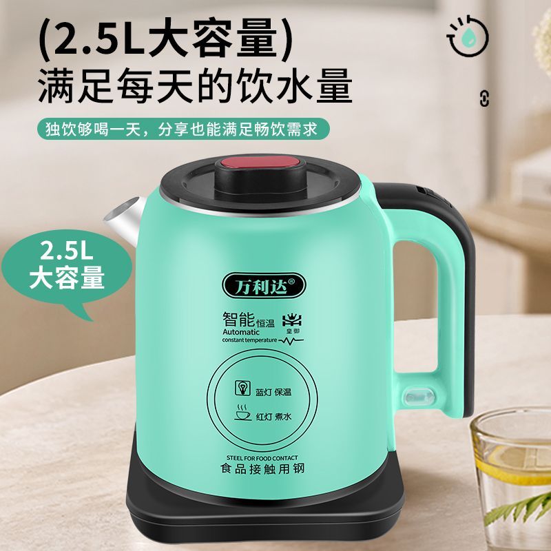 正品万利达电热水壶食品级双层防烫恒温保温大容量2.5L