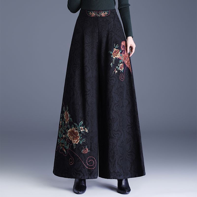 民族提花国风2025新款中式绣花刺绣高腰休闲裤复古宽松阔腿裤长裤