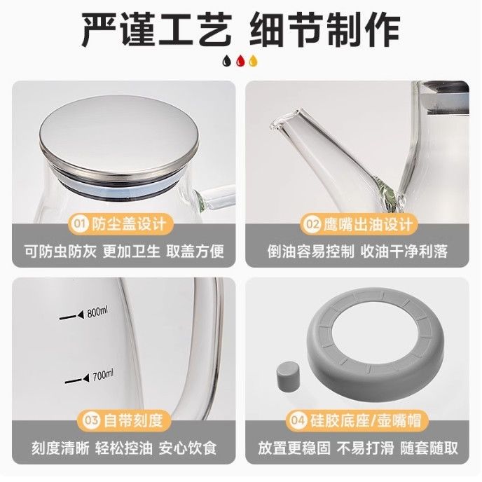高硼硅油壶家用厨房玻璃酱油醋瓶密封油壶新款家居大口油壶