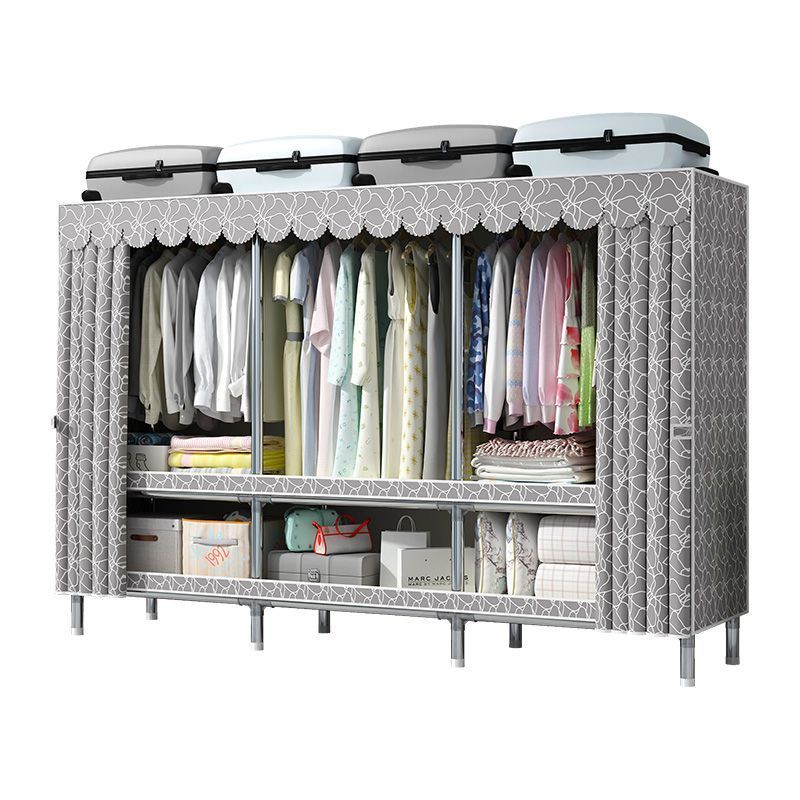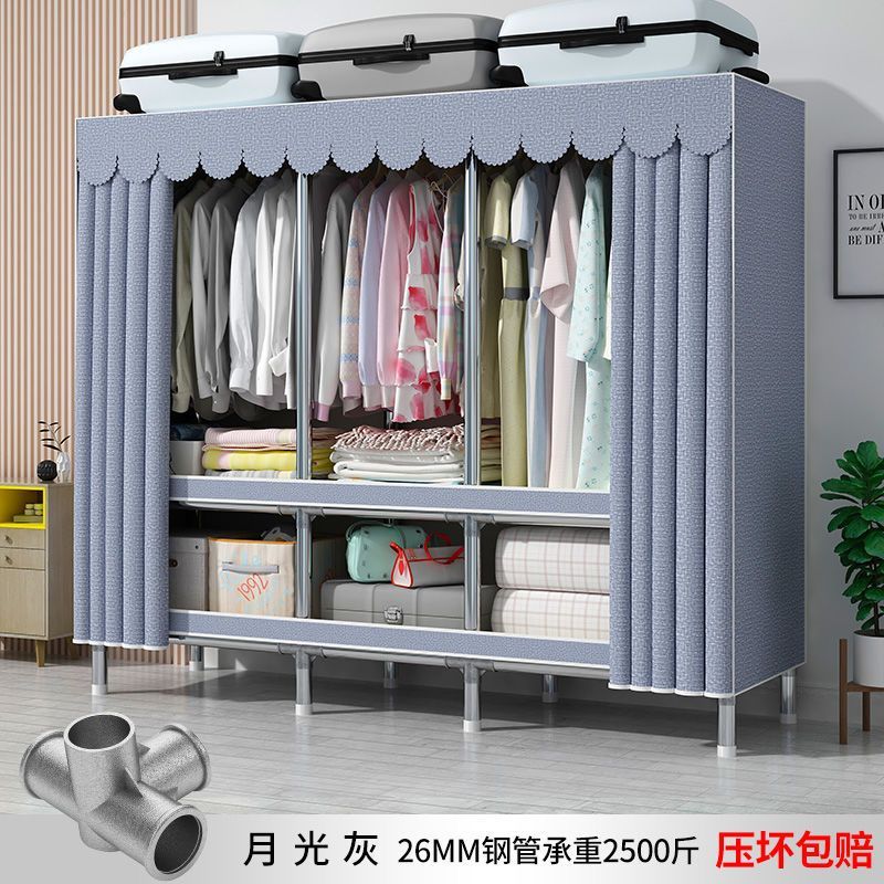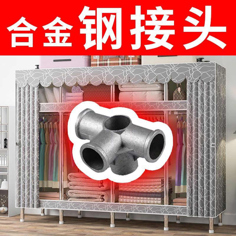 依芙晟罗蓝家用卧室简易布衣柜加粗加厚加固全钢架铝合金挂衣架子