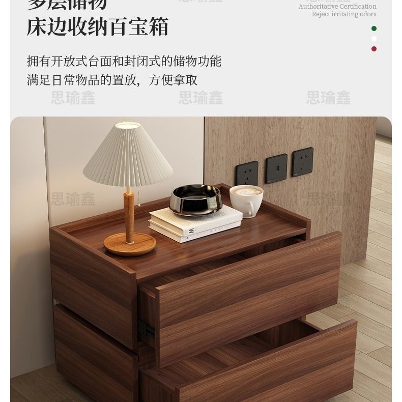新款实木简约现代床头柜小型卧室床边柜轻奢家用双层储物柜收纳