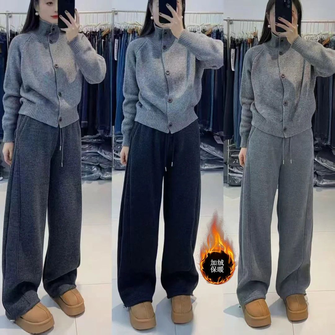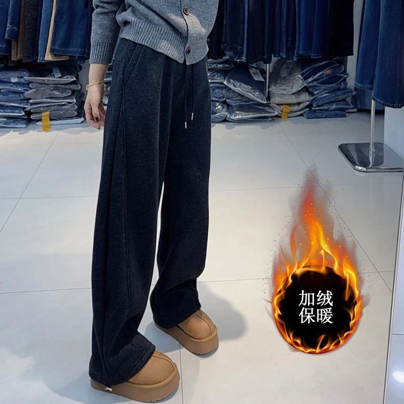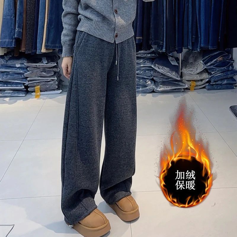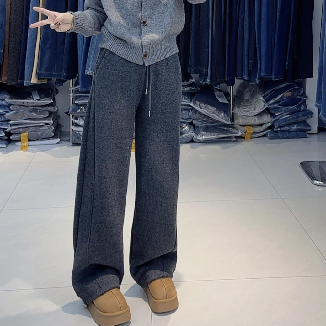 【正版原版高货品质】羊绒毛呢冬加绒加厚阔腿裤女高腰垂感弯刀裤