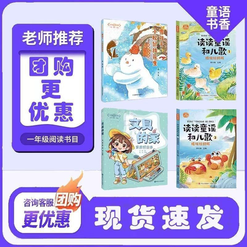 童语书香 一年级 雪孩子小松鼠找花生 文具的家 (注音全彩美绘)