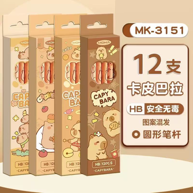 卡通铅笔卡皮巴拉铅笔小学生HB铅笔带橡皮擦文具礼盒学生必备文具【7天内发货】