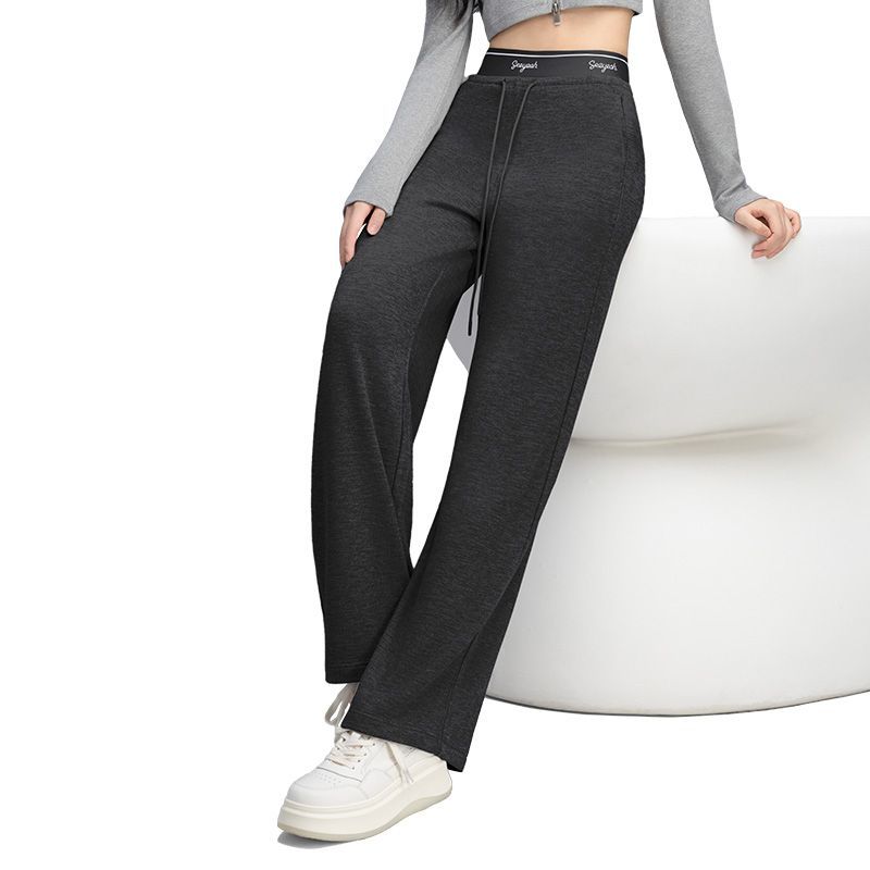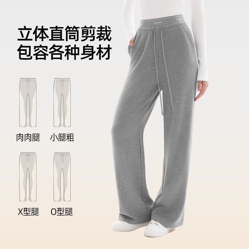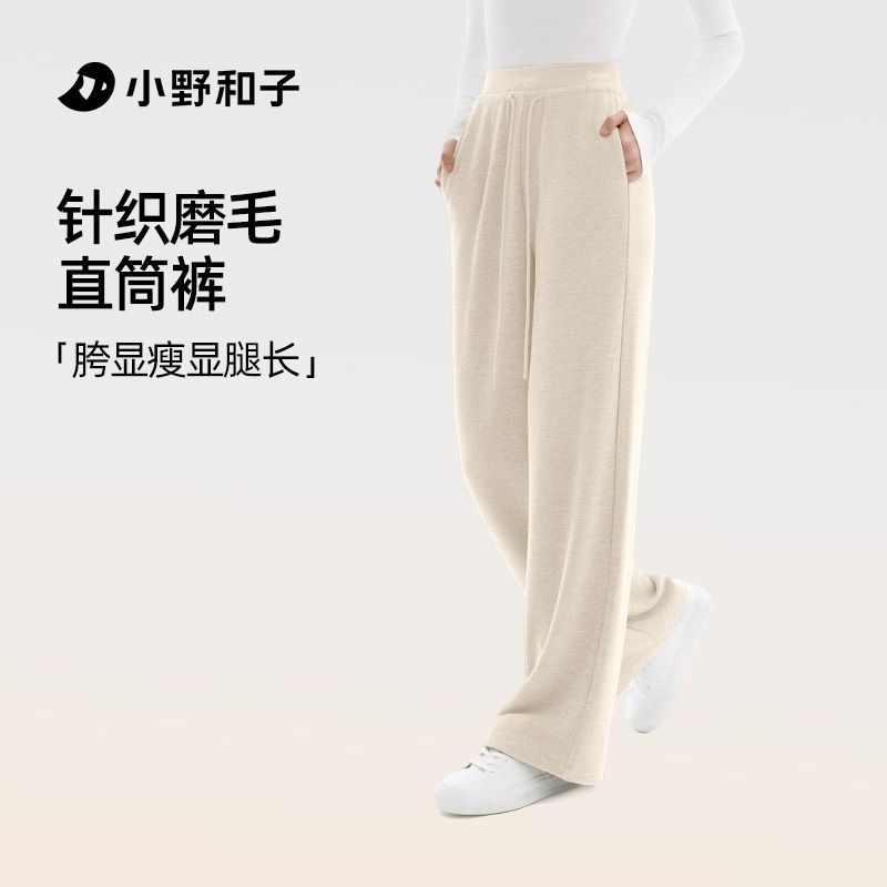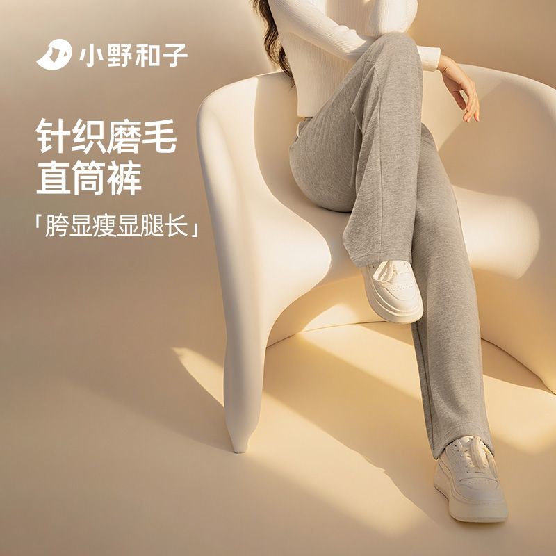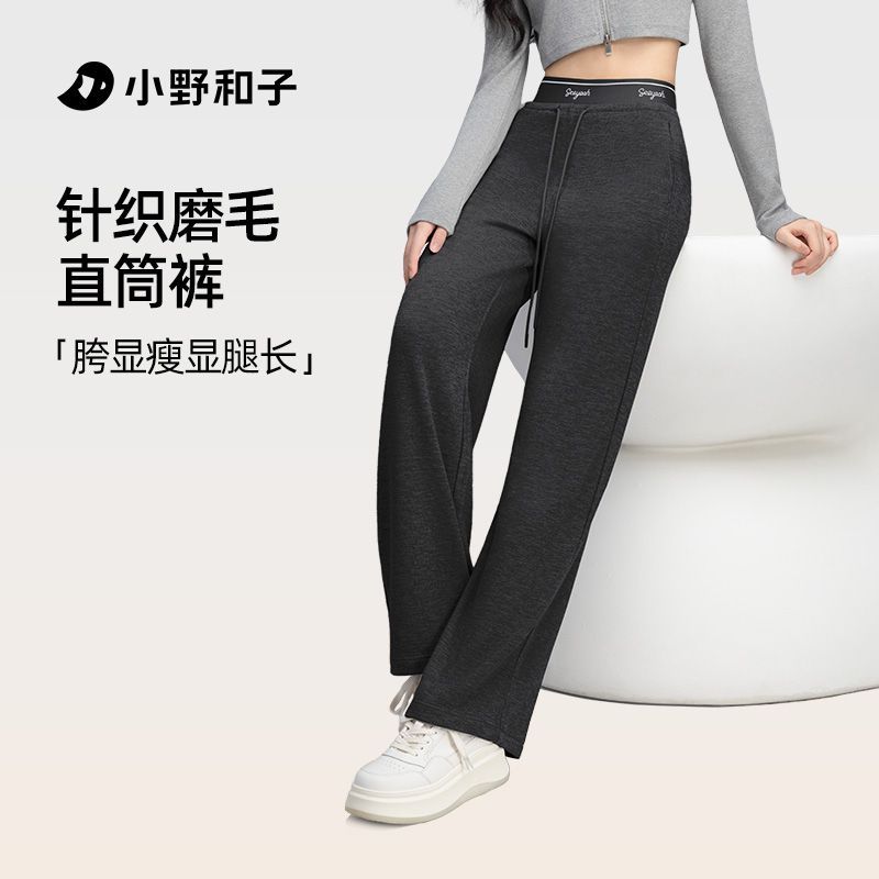 小野和子秋冬黑色针织磨毛高腰休闲裤垂感直筒阔腿打底裤连裤袜女