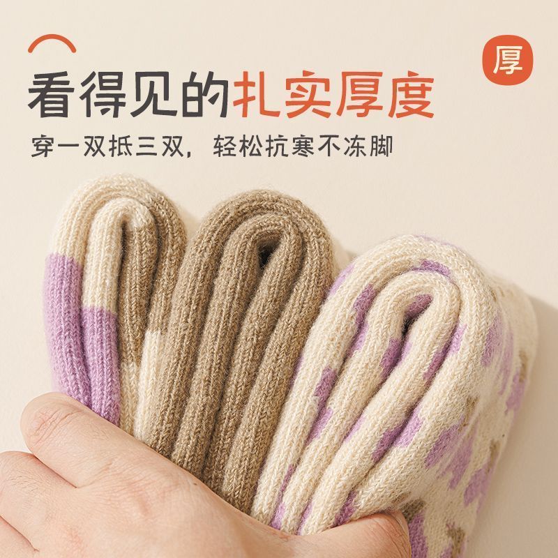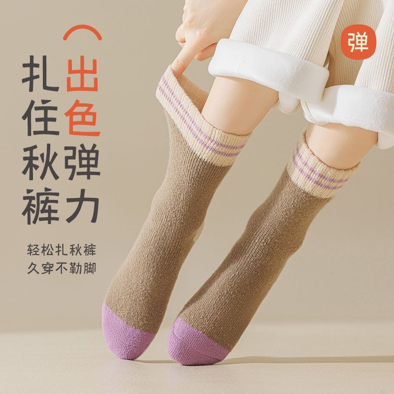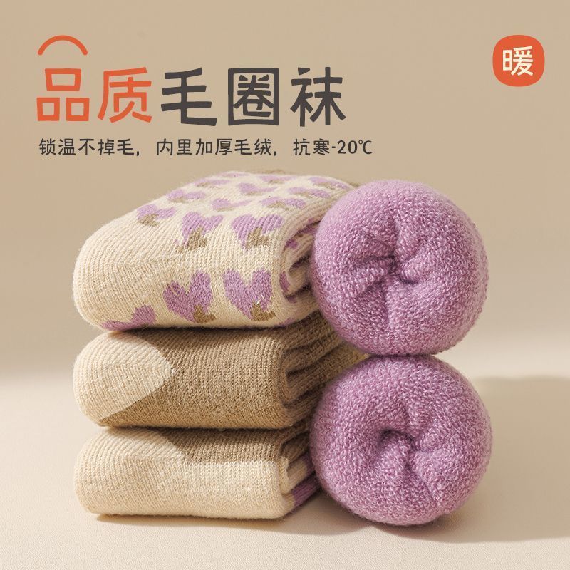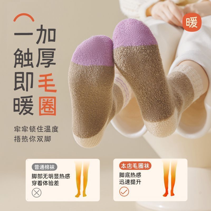 芬腾加厚毛圈袜子女秋冬季保暖抗寒甜美巨厚筒袜冬天超厚长筒袜