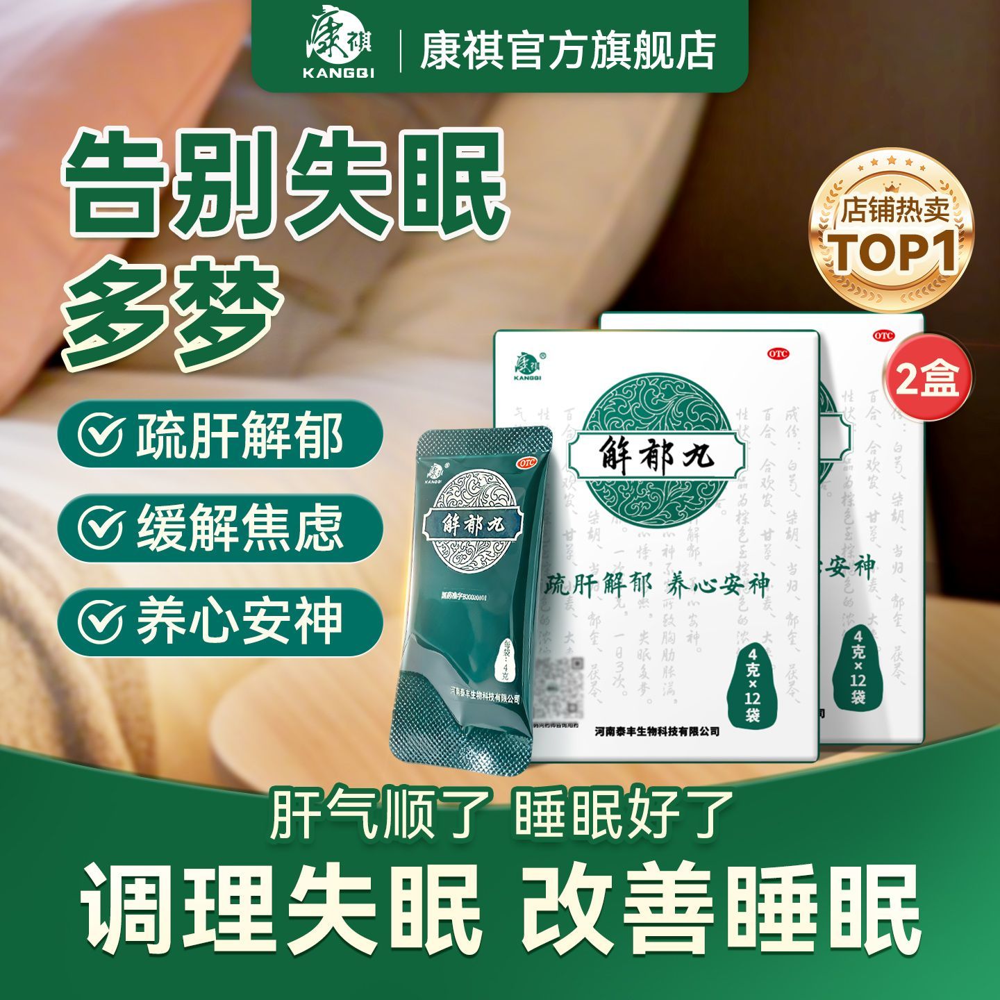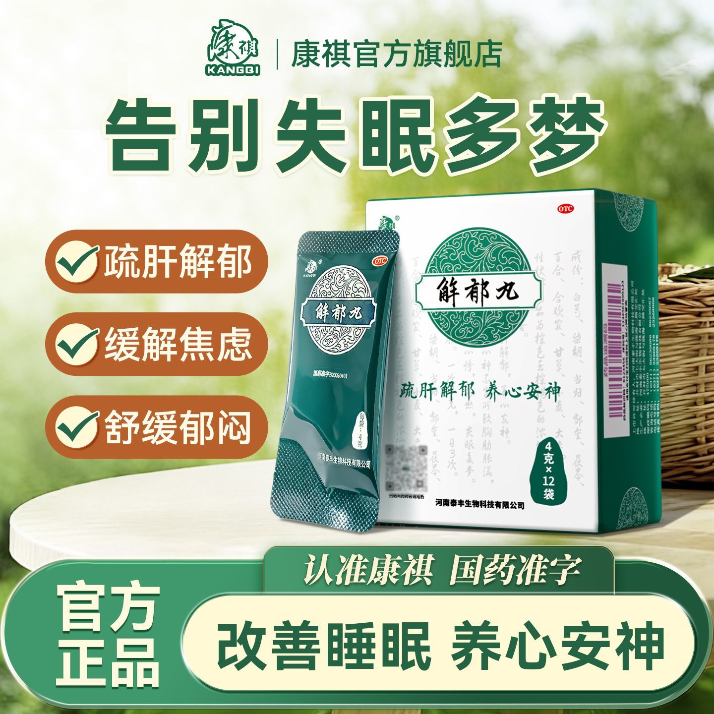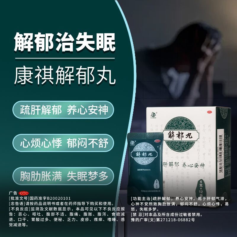 康祺 解郁丸 4g*12袋/盒 康祺解郁丸4g12袋改善焦虑老人失眠心烦易怒抑郁养心安神助睡眠