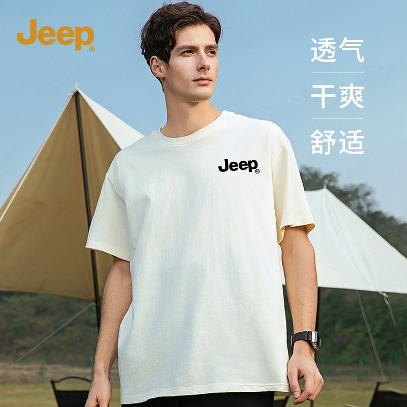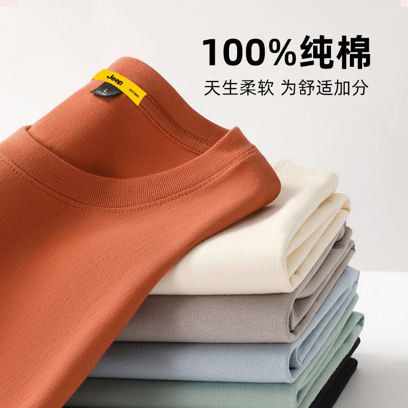 JEEP吉普重磅220g纯棉短袖T恤男夏季新款男士户外通勤休闲半袖潮