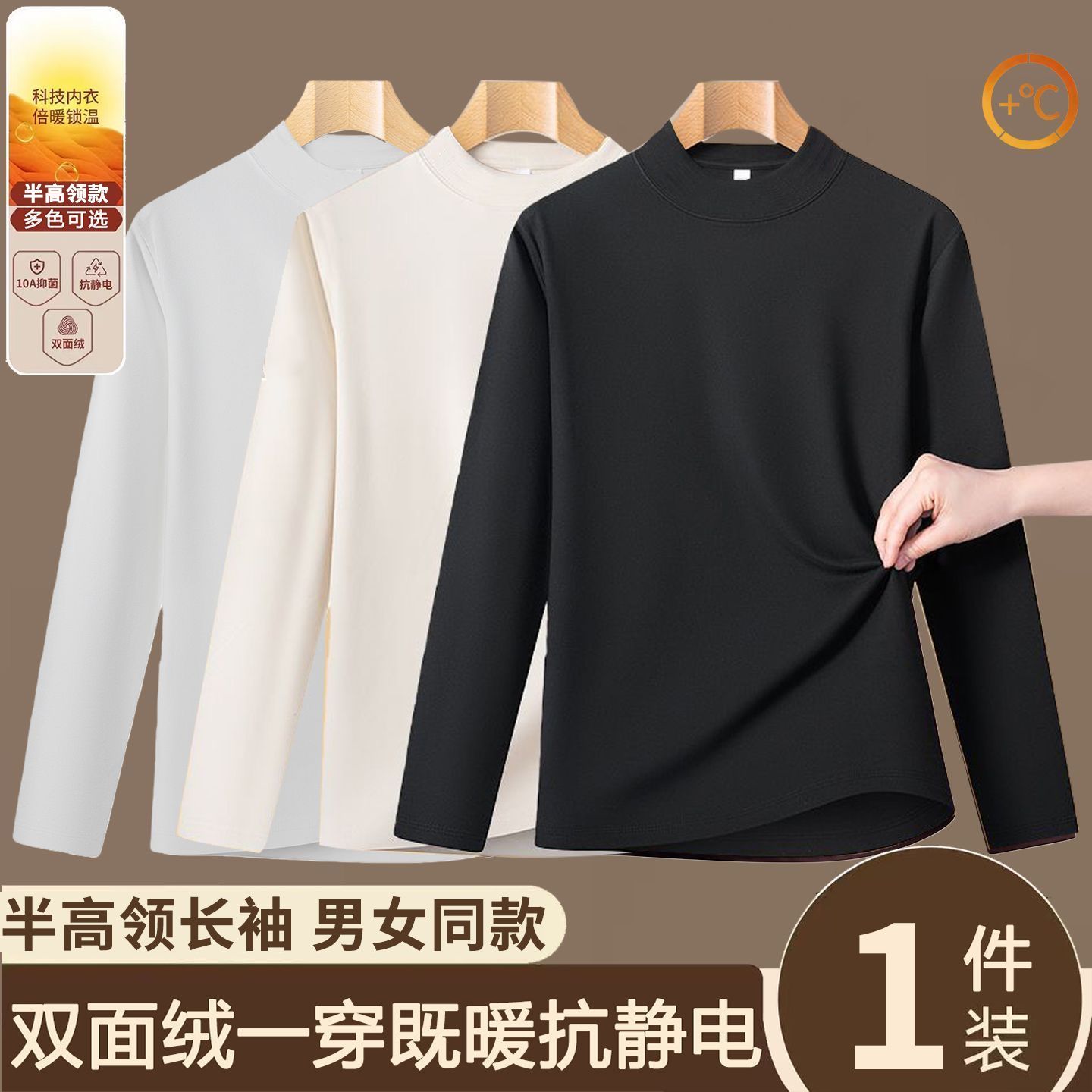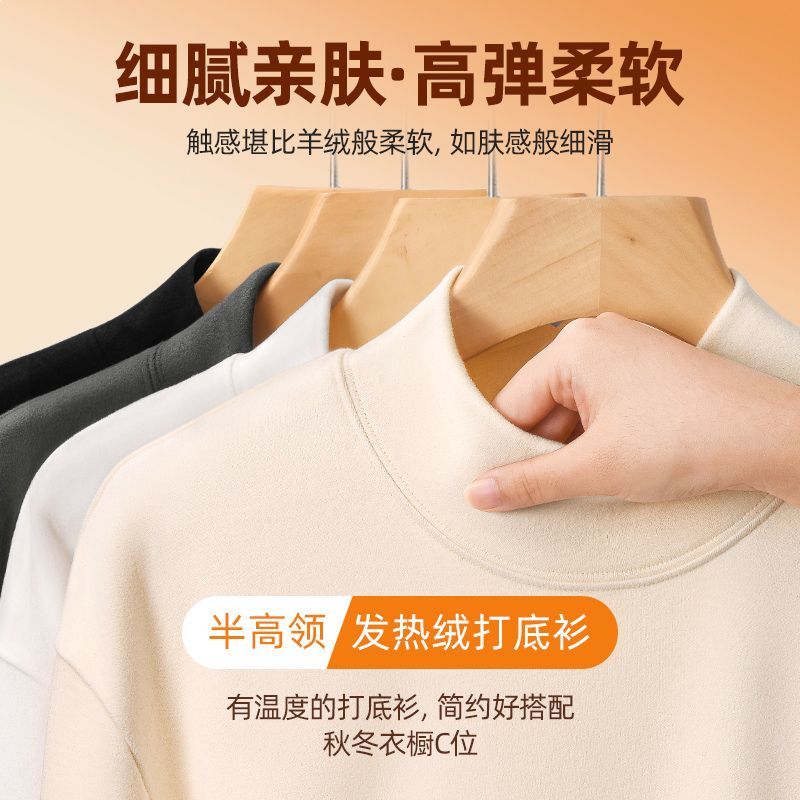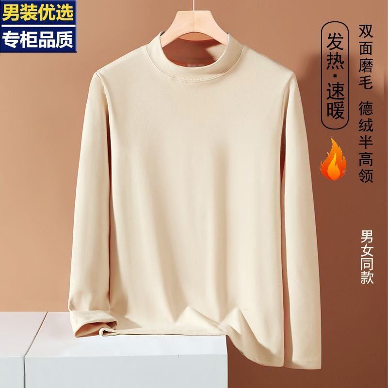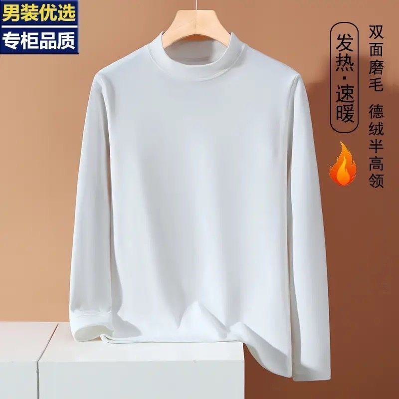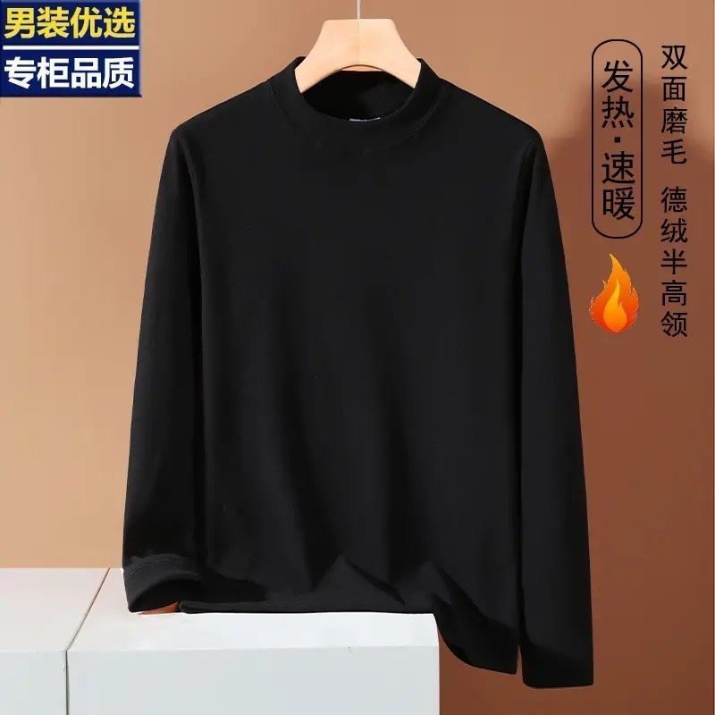 双面绒德半高领打底衫男士冬季保暖内搭长袖T恤新款男士中领秋衣