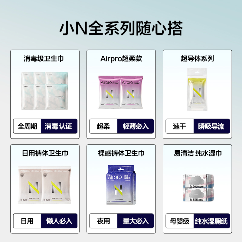 日用+夜用+护垫+安睡裤都有!全周期任选!都是爆.款产品!随心搭!品质放心!双速吸收不反潮!呵护经期敏感!量大姐妹冲!babycare旗下产品!