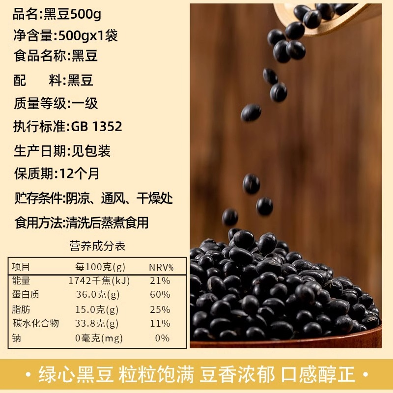 礼金+下拉到手14.5!精香绿心黑豆500g*3袋