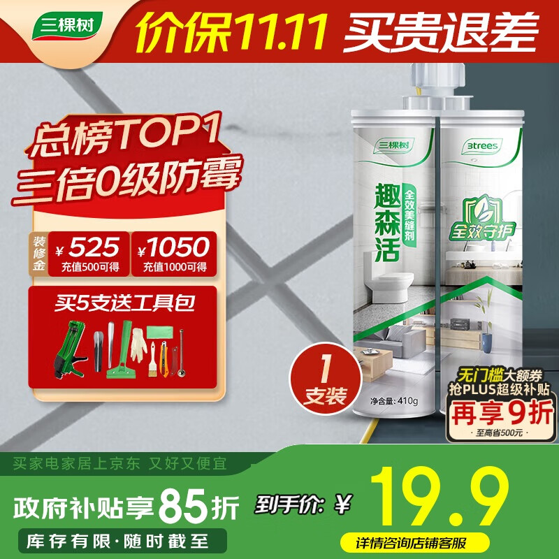 三棵树漆美缝剂十大品牌瓷砖地砖专用工具填缝剂防霉勾缝美缝胶 亚浅灰