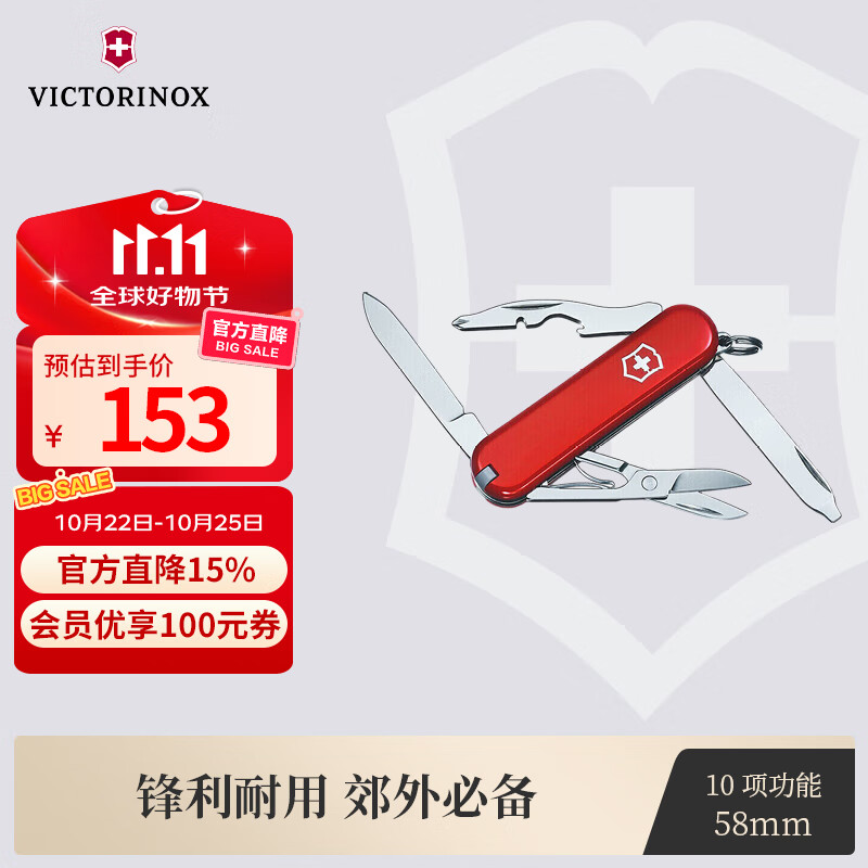 维氏瑞士军刀逍遥派10项多功能刀水果刀折叠刀红色0.6363-012.6