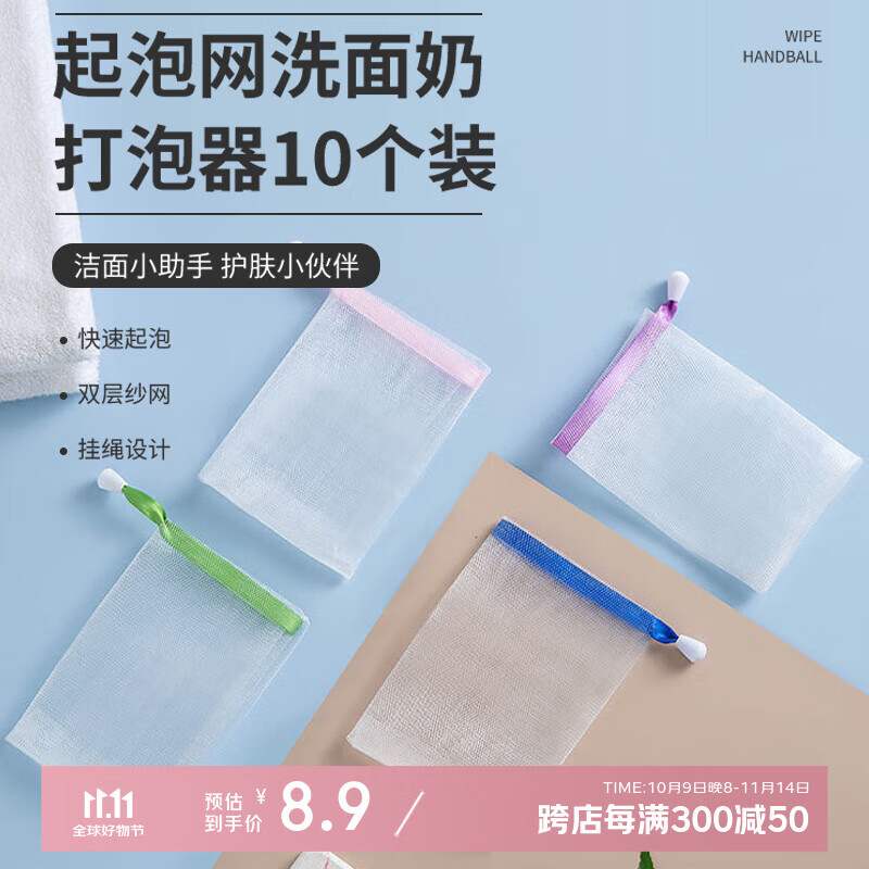 HOUYA 起泡网10个装 洗面奶发泡网一次性打泡洗脸起泡沫旅行肥皂网袋