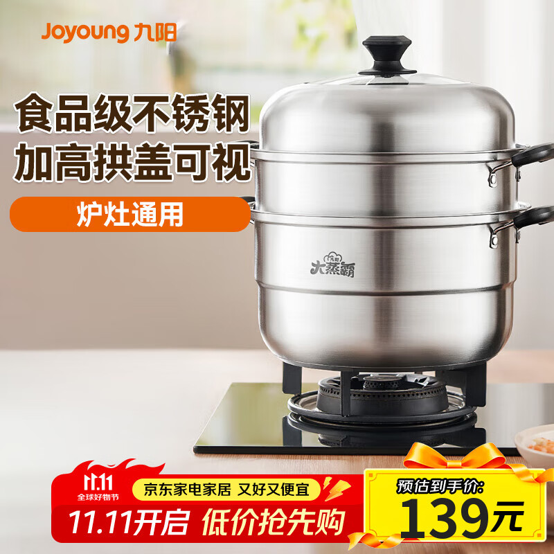 九阳(Joyoung)蒸锅复合底不锈钢三层蒸锅家用蒸馒头包子高拱盖炉灶通用30cm