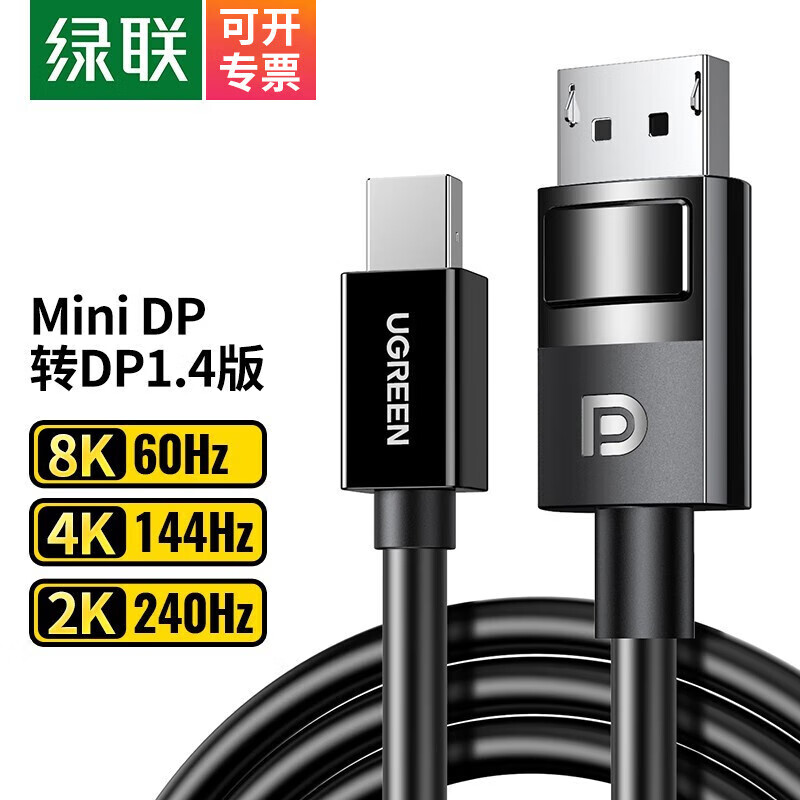 绿联Mini DP转DP转接线迷你Displayport公对公转换线 适用苹果MacBook雷电接口 黑色 DP1.4 1.5米