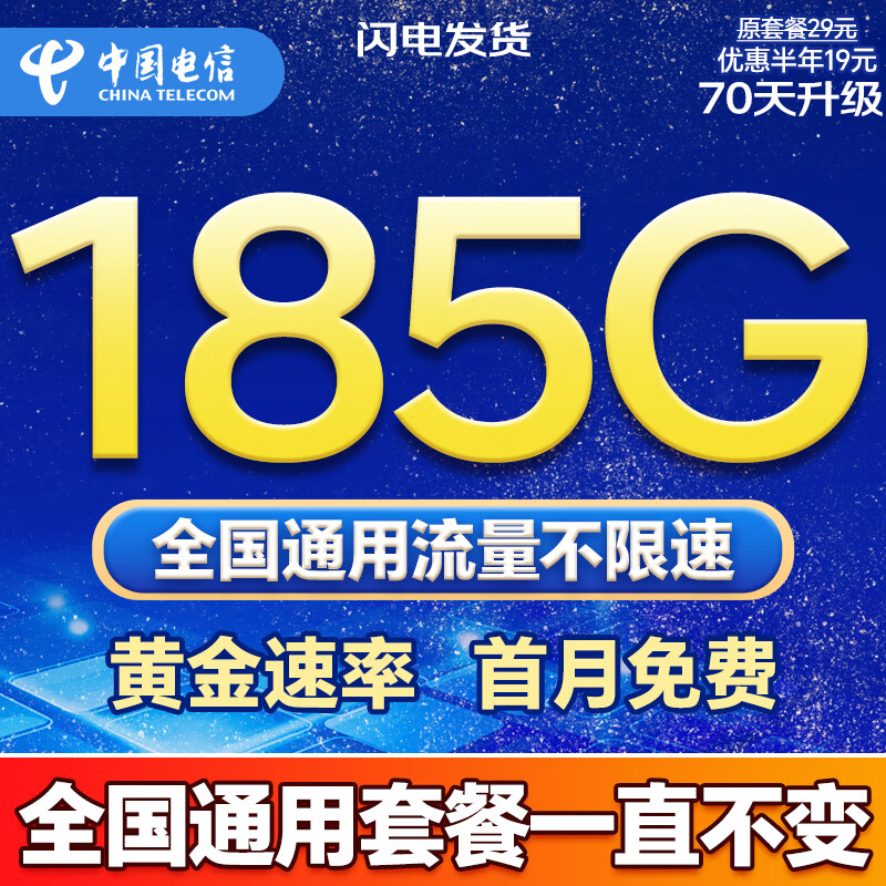 中国电信流量卡全国通用无限流量手机卡纯上网卡高速不限速5G大王卡电话卡电信流量卡 花瓣卡19元185G全国通用超长套餐+首月免费
