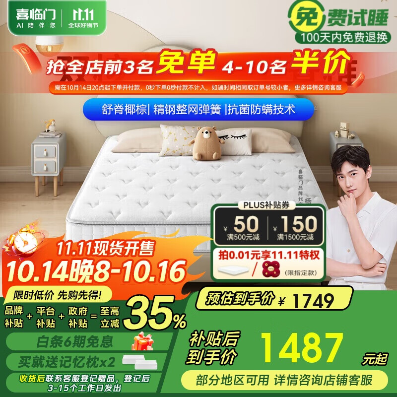喜临门儿童床垫 椰棕弹簧床垫青少年席梦思 白骑士儿童版 1.5x2米偏硬