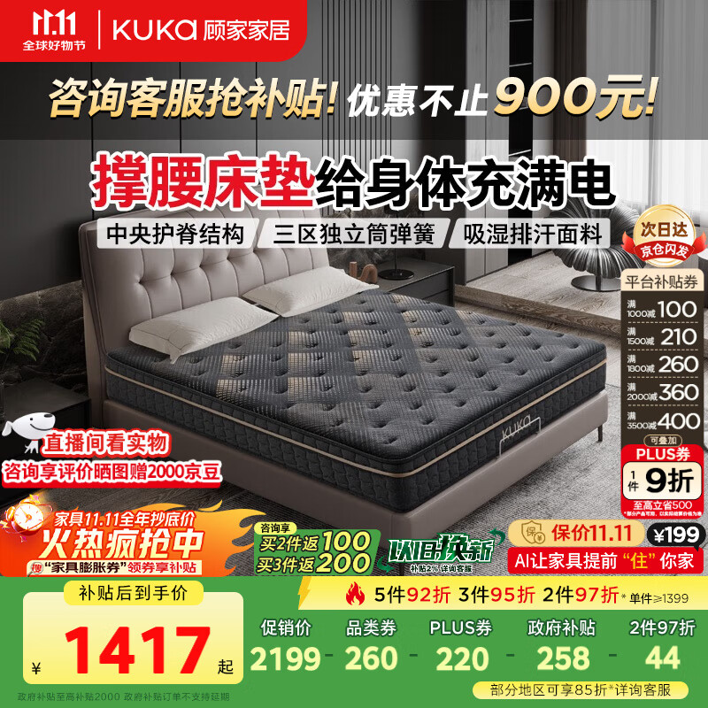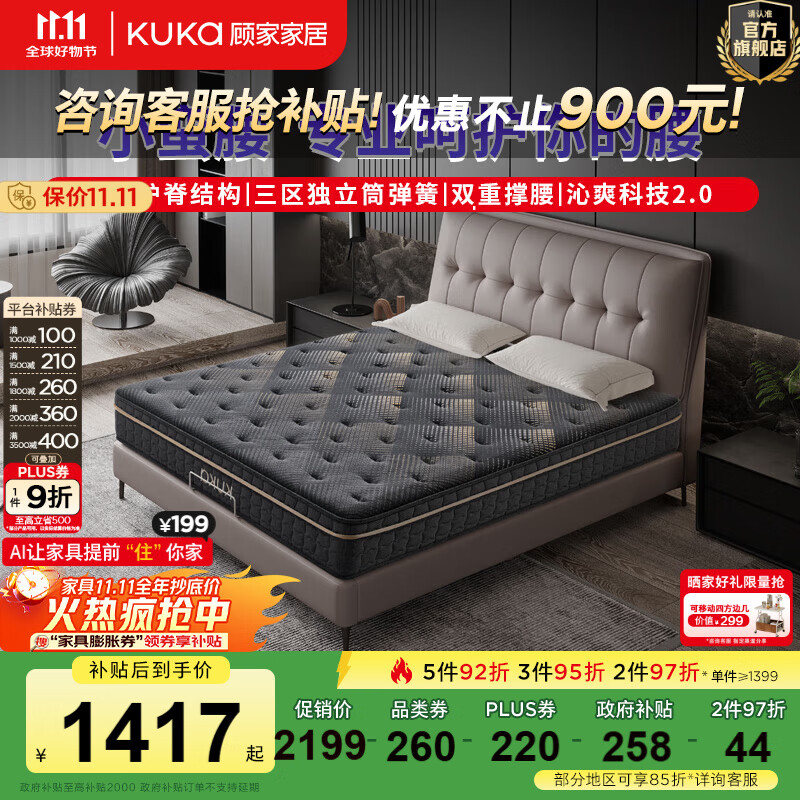 顾家家居(KUKA)三区独立弹簧乳胶席梦思小蛮腰床垫M1219 1.8X2米【京仓闪发】