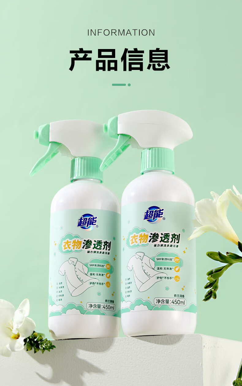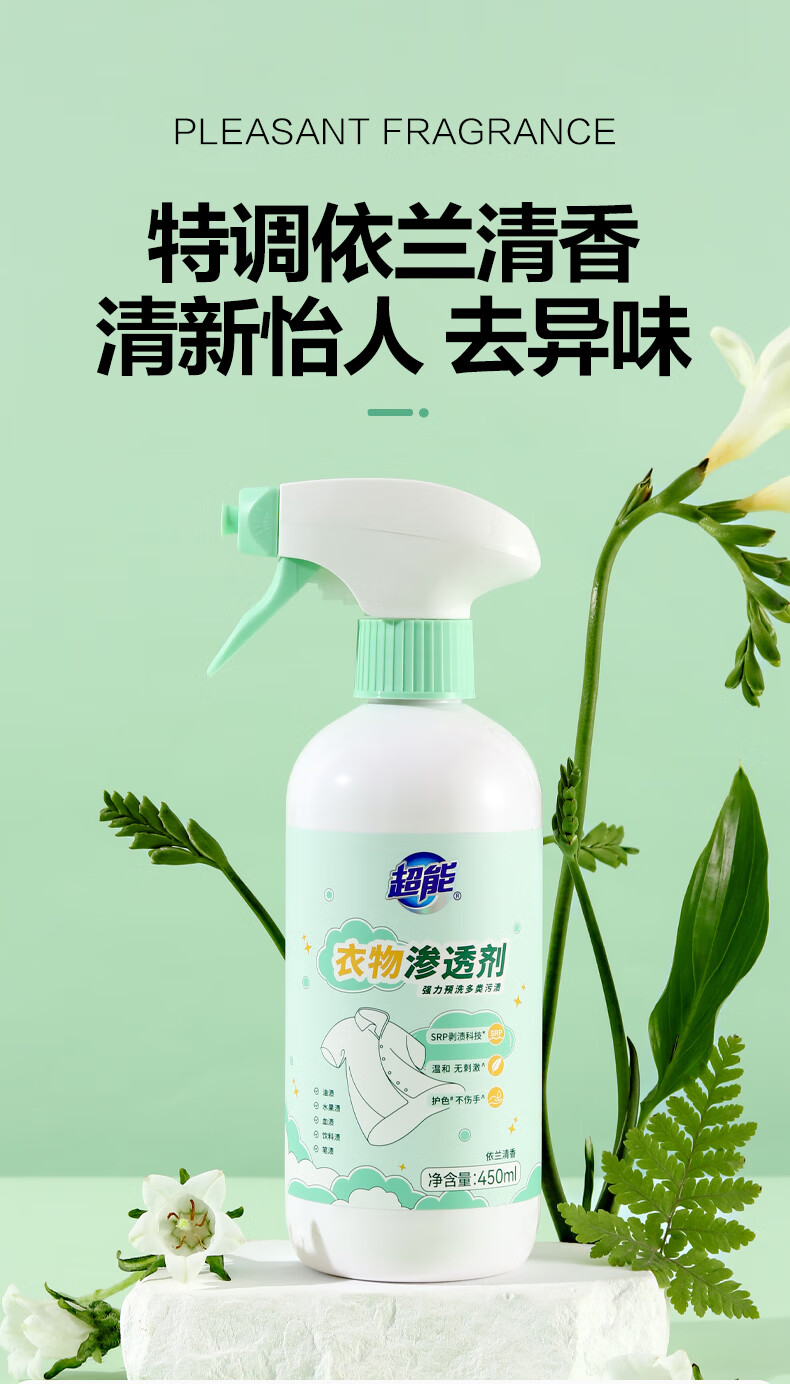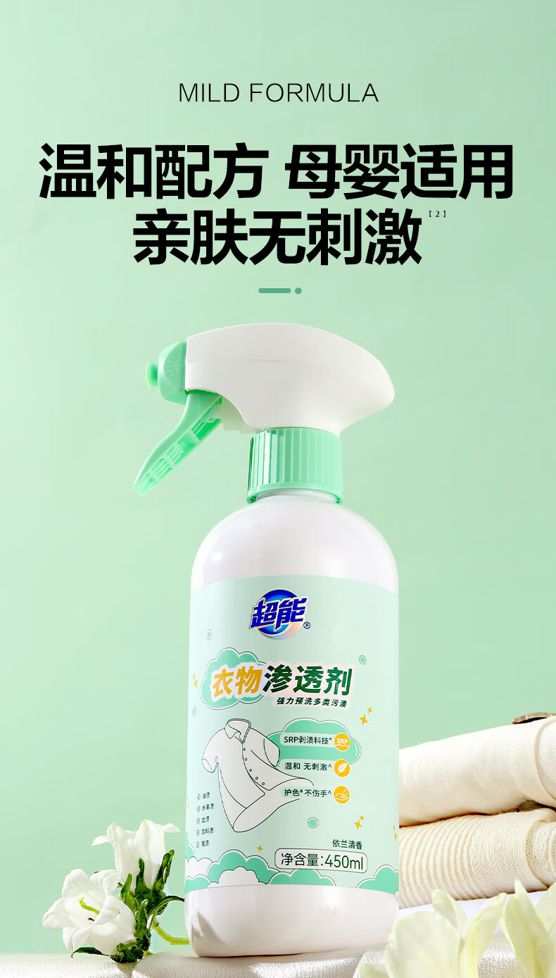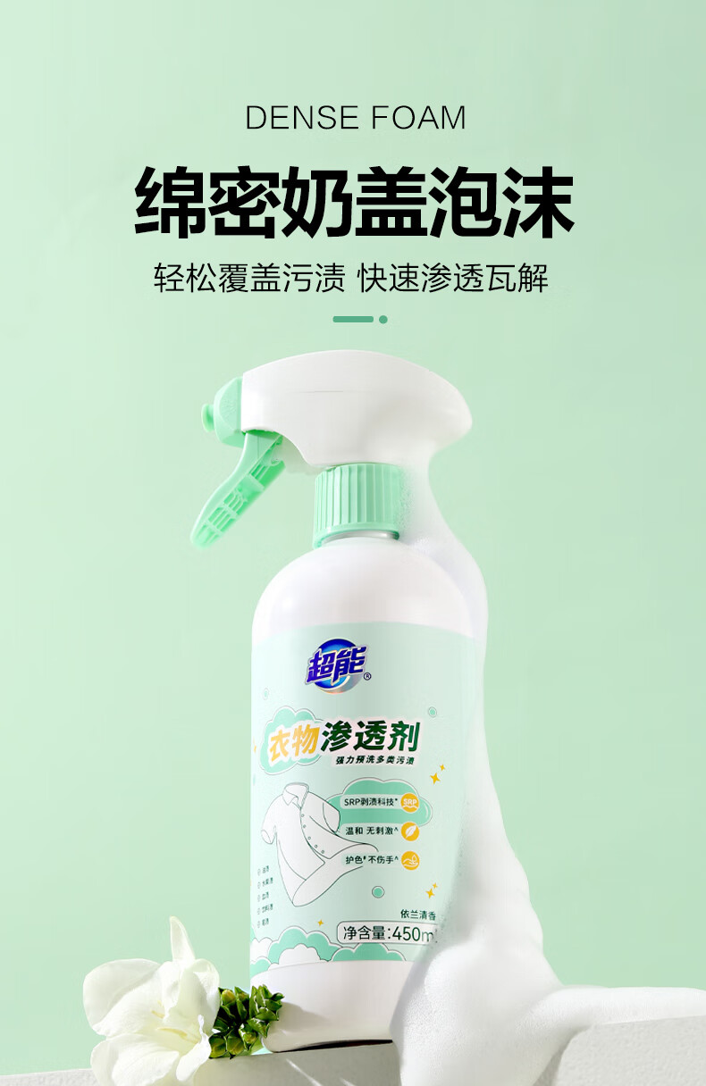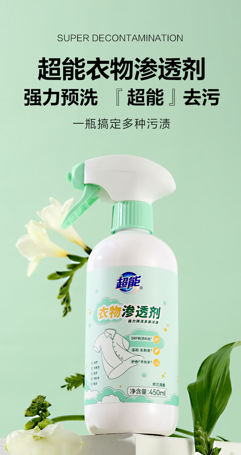 超能450ml衣物渗透剂去油渍衣服清洁剂洗衣去污去黄神器SRP剥渍科技 450ml*3瓶升级版