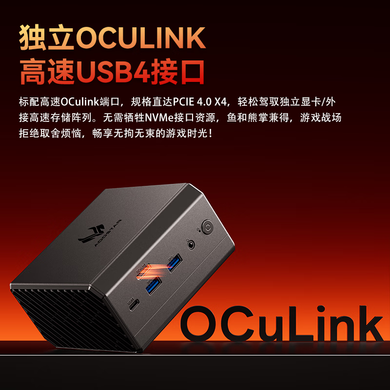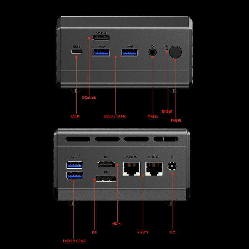 天钡GT37迷你主机AI PC高性能锐龙HX370电脑台式机 高算力电竞游戏便携MINI小型口袋整机带OCuLink接口 锐龙AI9 HX370 32G DDR5内存1TB固态硬盘